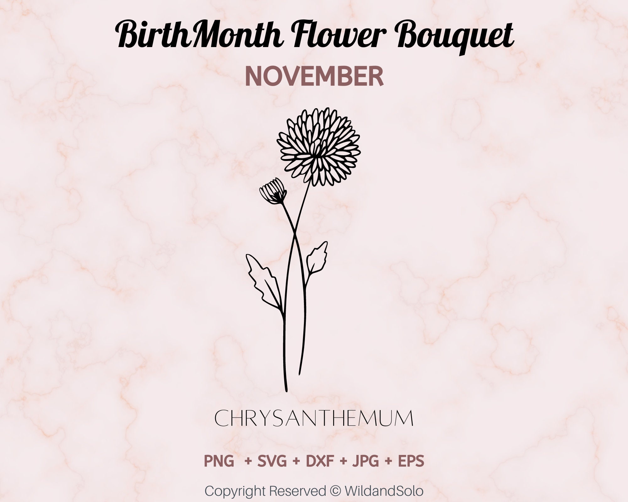 Chrysanthemum Svg November Birth Flower Svg Birth Month Flower Drawing Birthday Flower Clipart Etsy